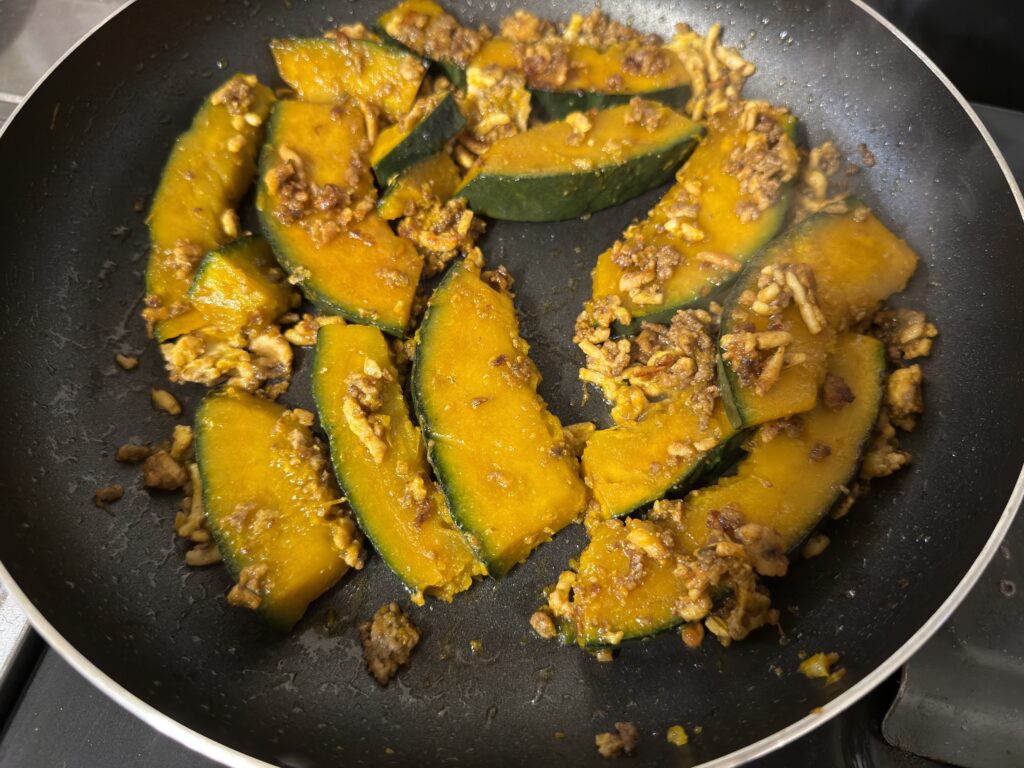 かぼちゃにお箸が通るくらいまで炒めてくださいな。