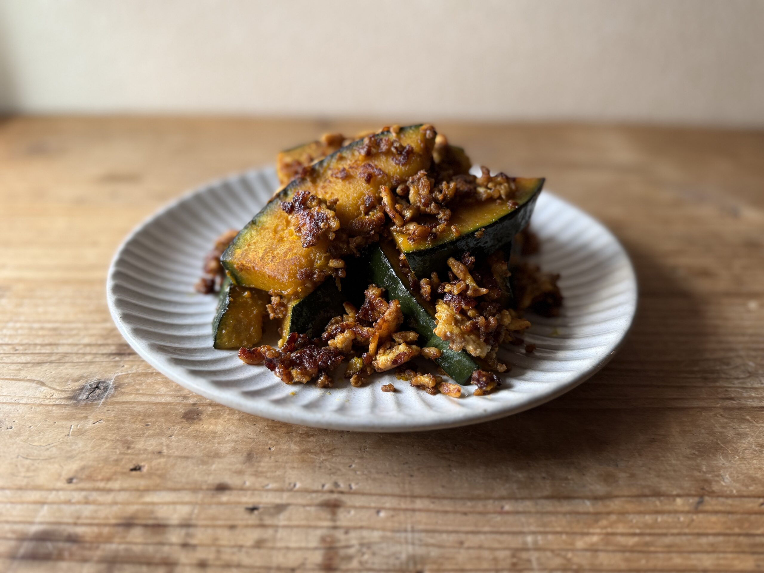 材料4つであっという間に完成!かぼちゃの甘味&ひき肉のコク&カレー風味が止まらんおいしさ!のおすすめレシピです。