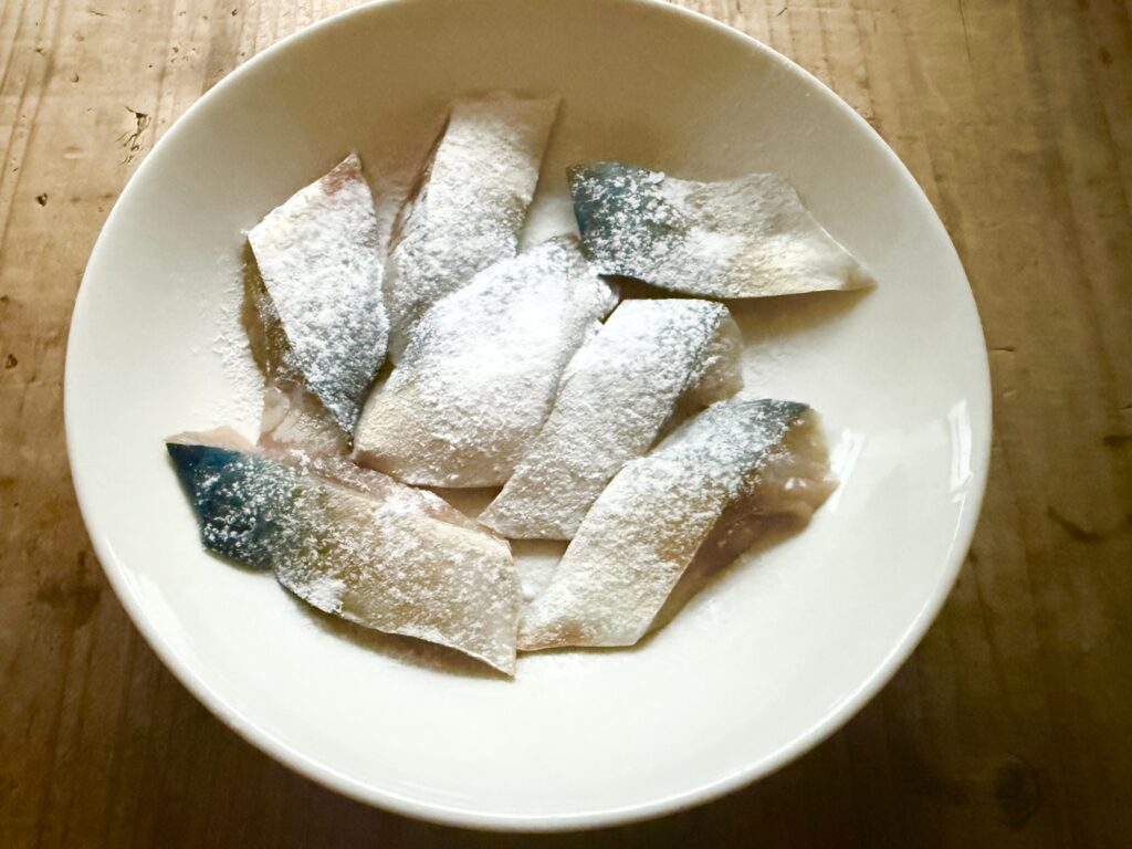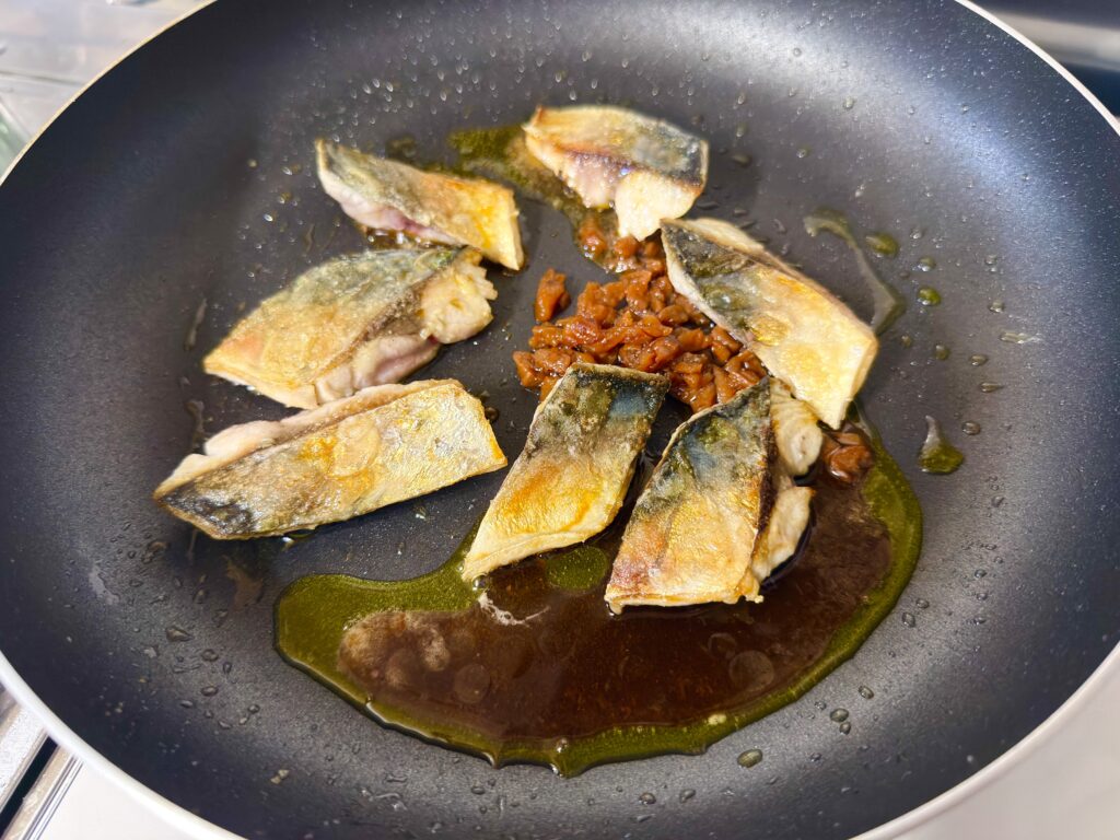 サバはキッチンペーパーで水分を軽く拭き取ると臭みを抑えられ、綺麗に焼き色がつきます。