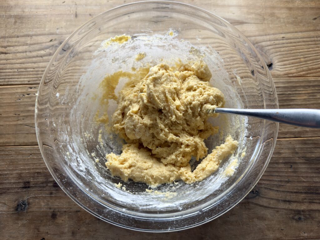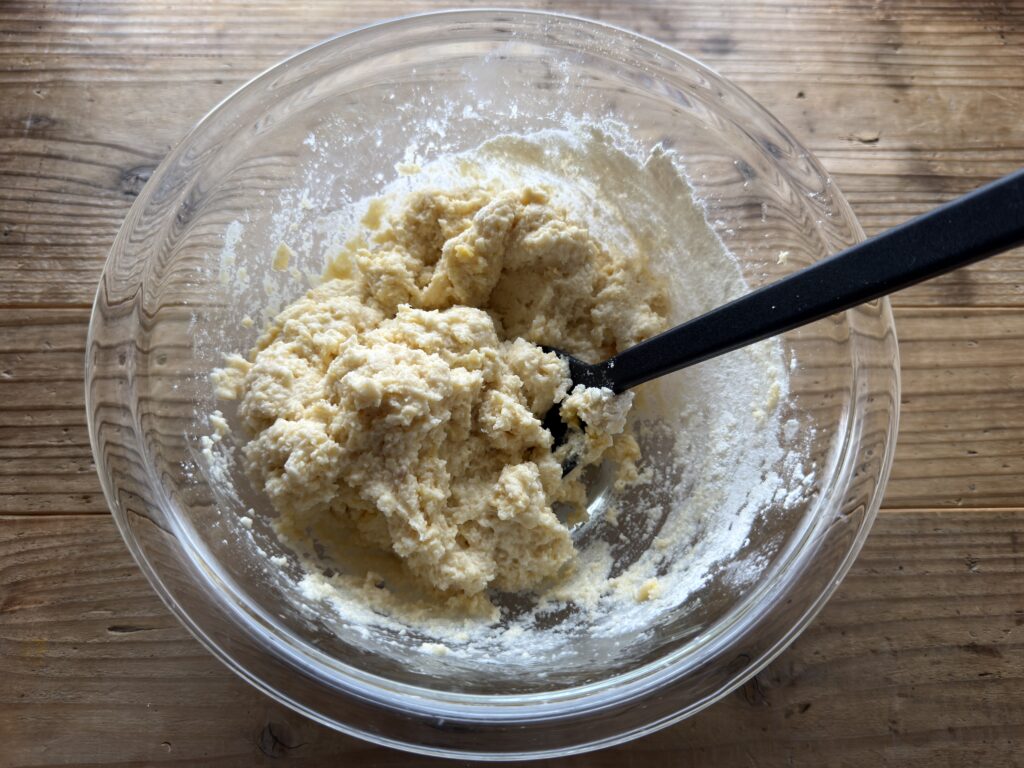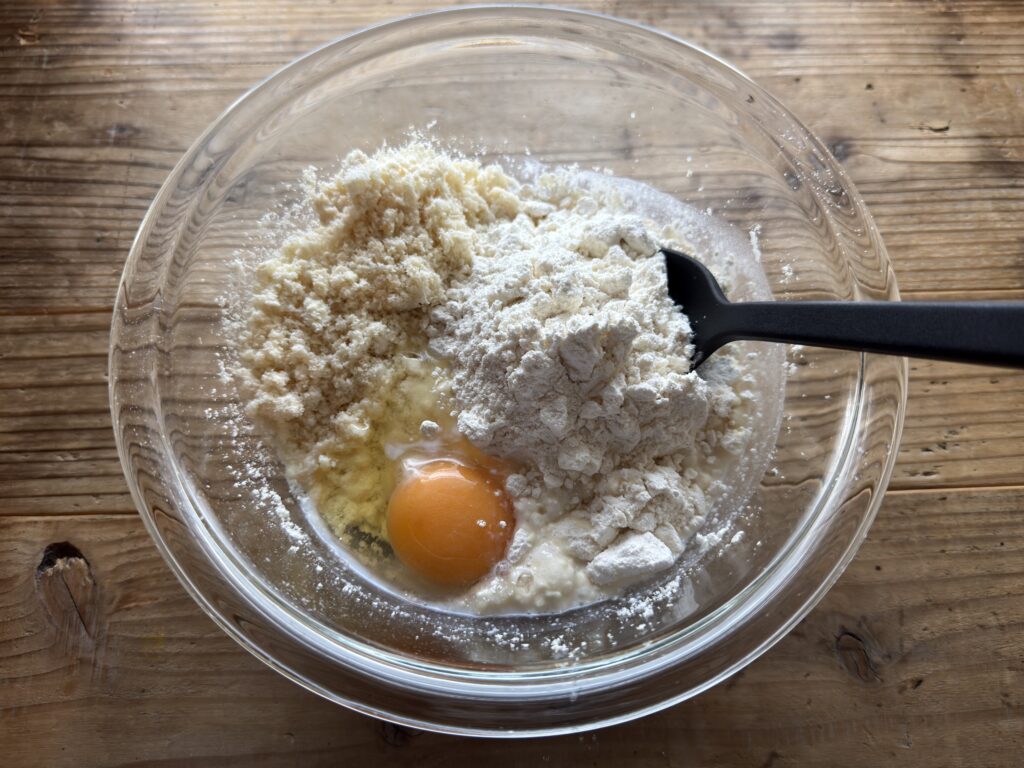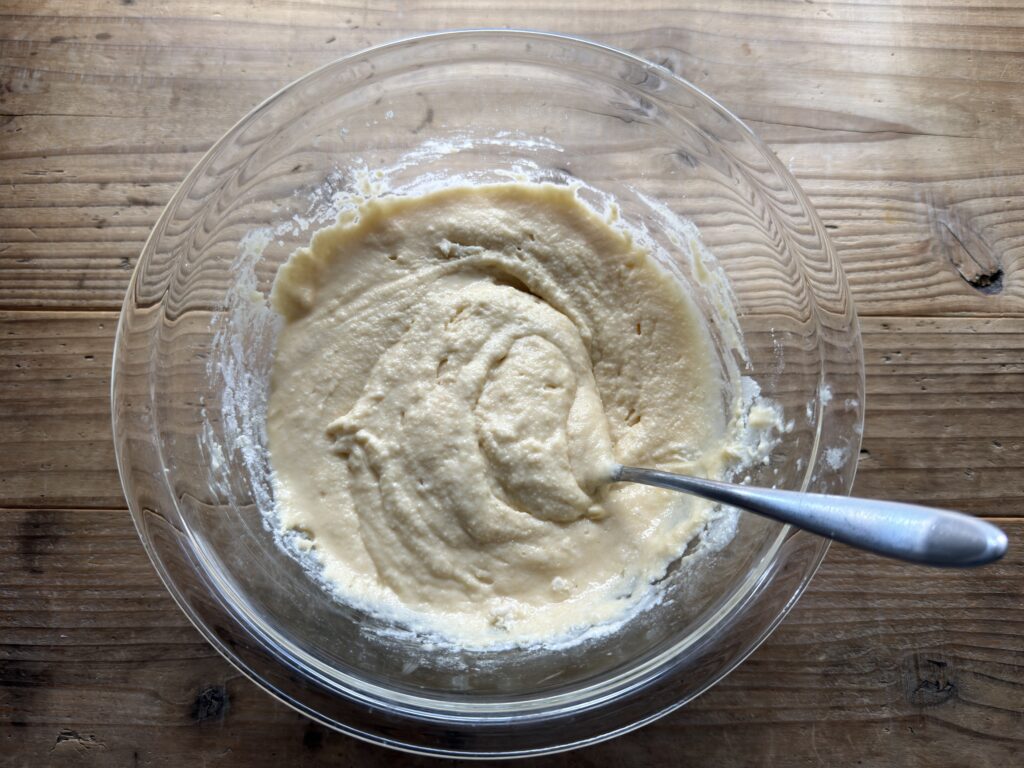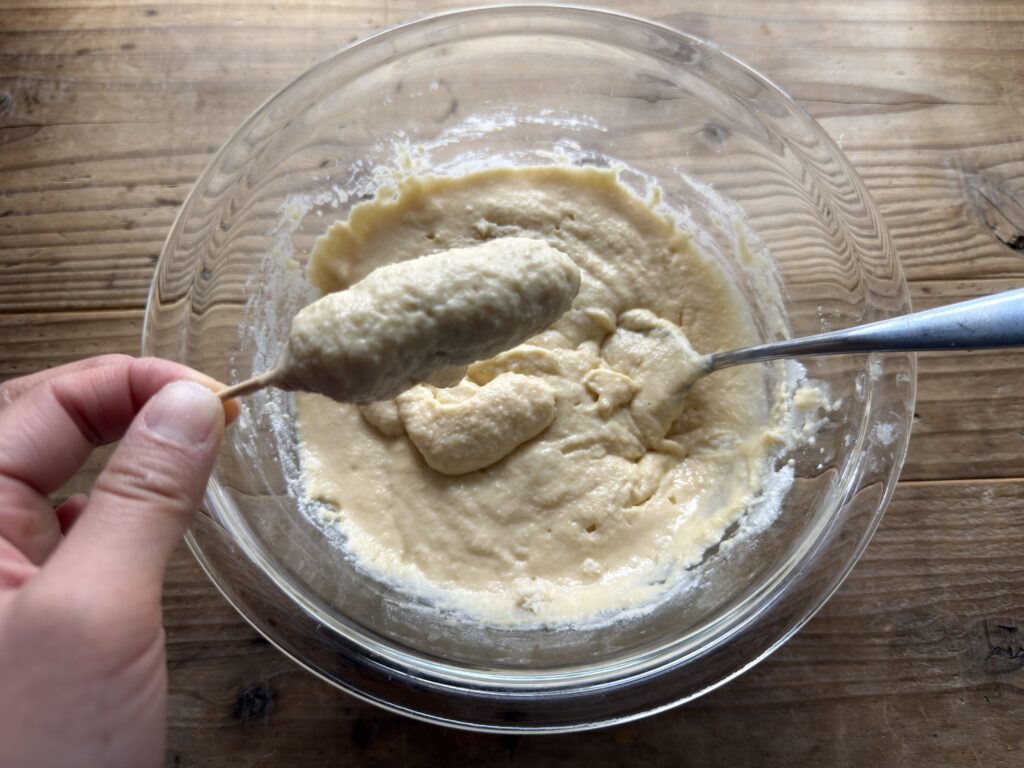 牛乳の量を倍の100mlにすると、サラサラの混ぜやすい生地に。