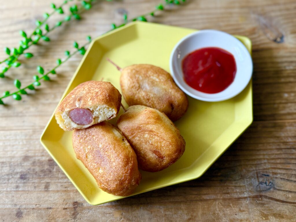外サク中ふわのアメリカンドッグが、ホットケーキミックスとおからで超簡単に作れちゃいます!