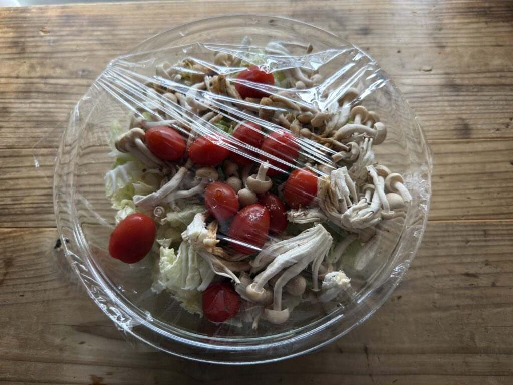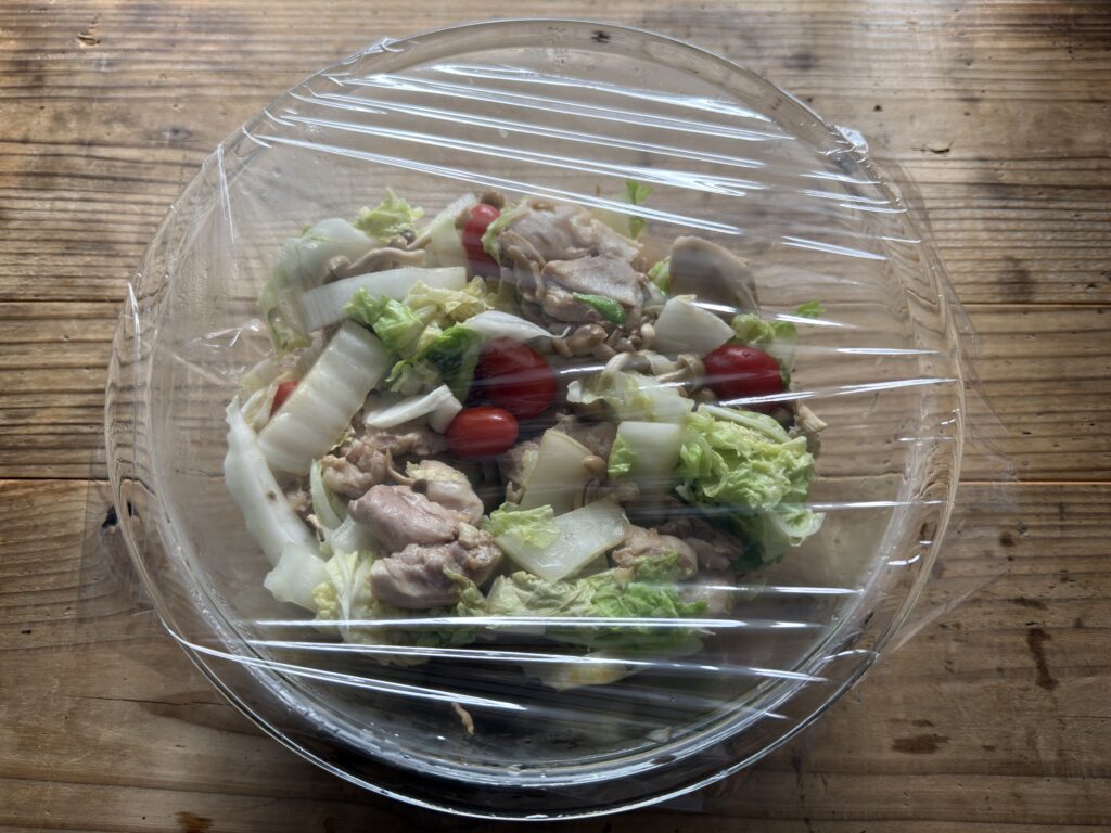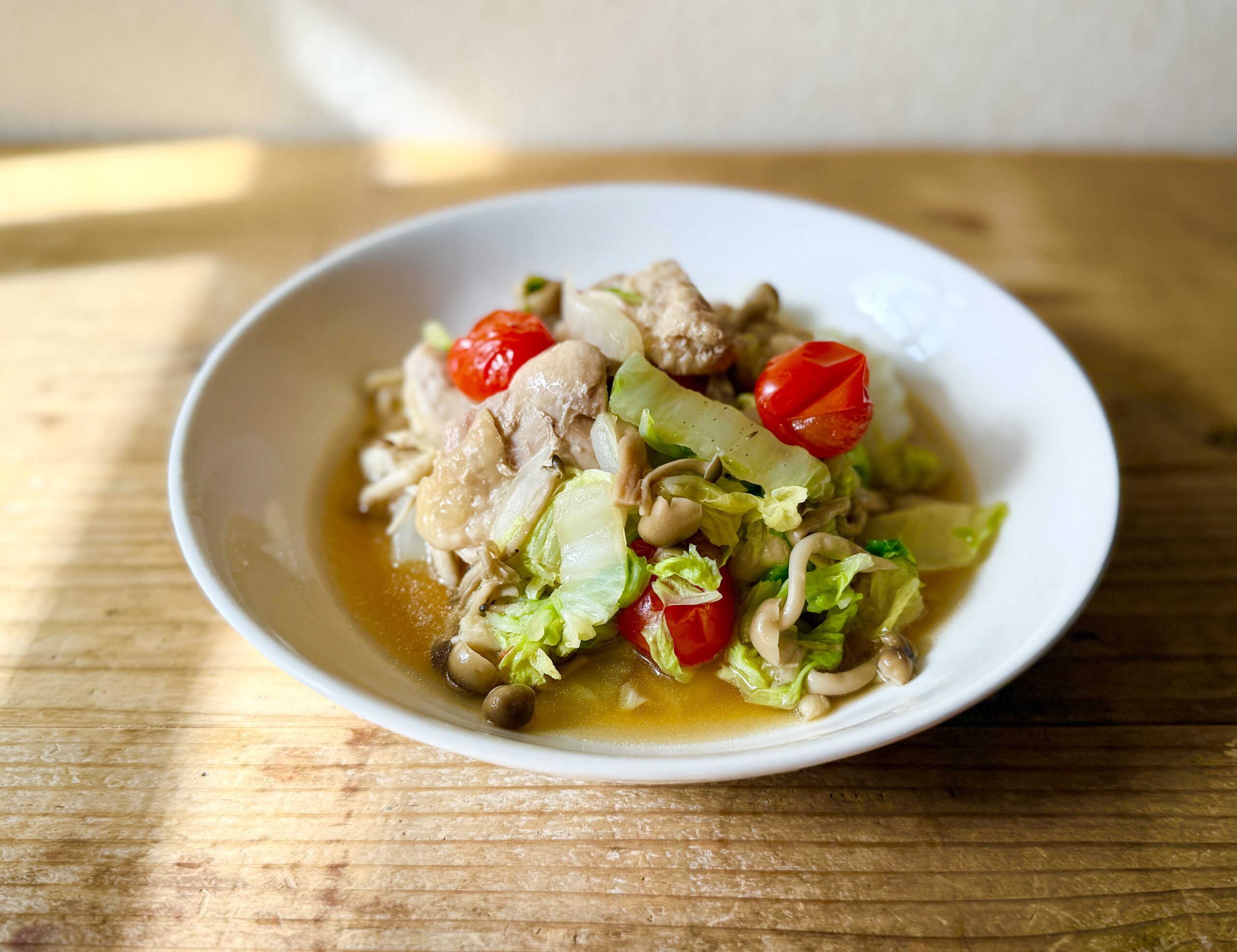白菜と鶏肉だけ、白菜と人参と鶏肉、などなどいろんな組み合わせで作ってみましたが、「白菜+しめじ+鶏肉+トマト」は最低限必要!(にんじん様ごめんなさい。)