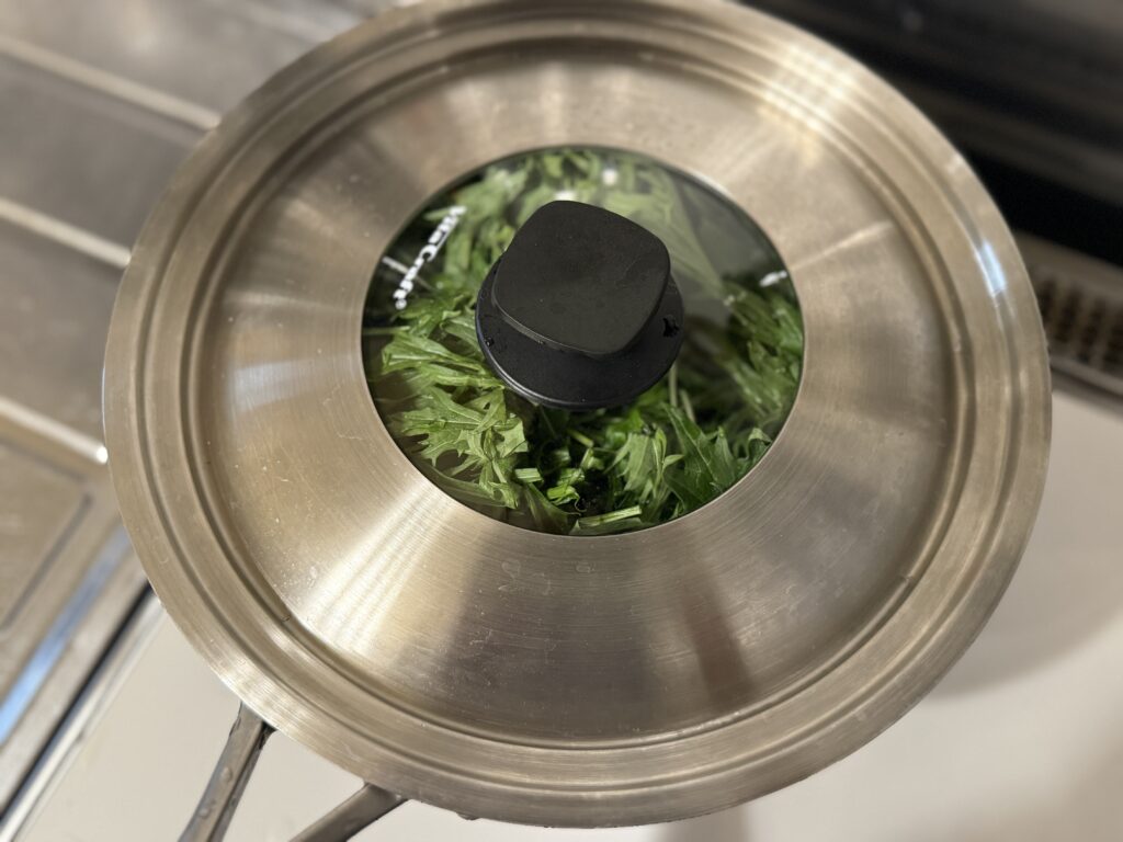 • 水菜の太さによっては柔らかくなるのに10分以上かかる場合もあるから、様子を見て調整してください。