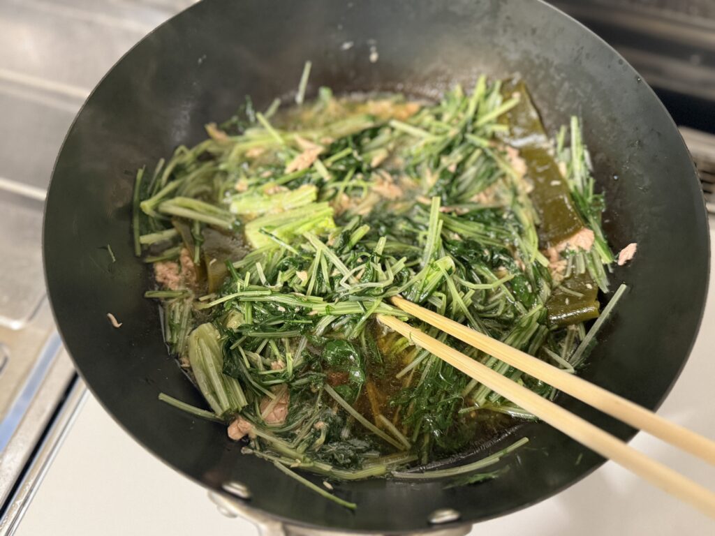 15分で作れる水菜とツナの簡単煮物レシピ。
