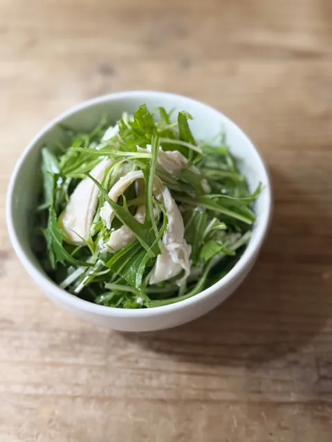 • サラダ:水菜とツナのぽん酢和え or 水菜とカニカマのチョレギ風サラダ